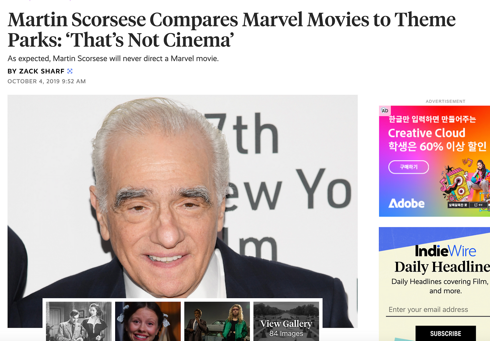 꽤 오랜 시간 동안 영화의 ‘왕좌’를 잡고 있던 마블 시네마틱 유니버스는 많은 노이즈가 있곤 했었습니다. 명감독인 마틴 스콜 세이지는 마블이 최고 주가를 달리던 엔드게임 시절 마블 영화는 놀이공원처럼 시네마가 아니라고 비판을 했으며, 많은 이들의 공분을 사긴 했지만.. 실제로 그의 말대로 엔드게임 이후 마블은 최악의 수를 두며 사업을 키우곤 했습니다.