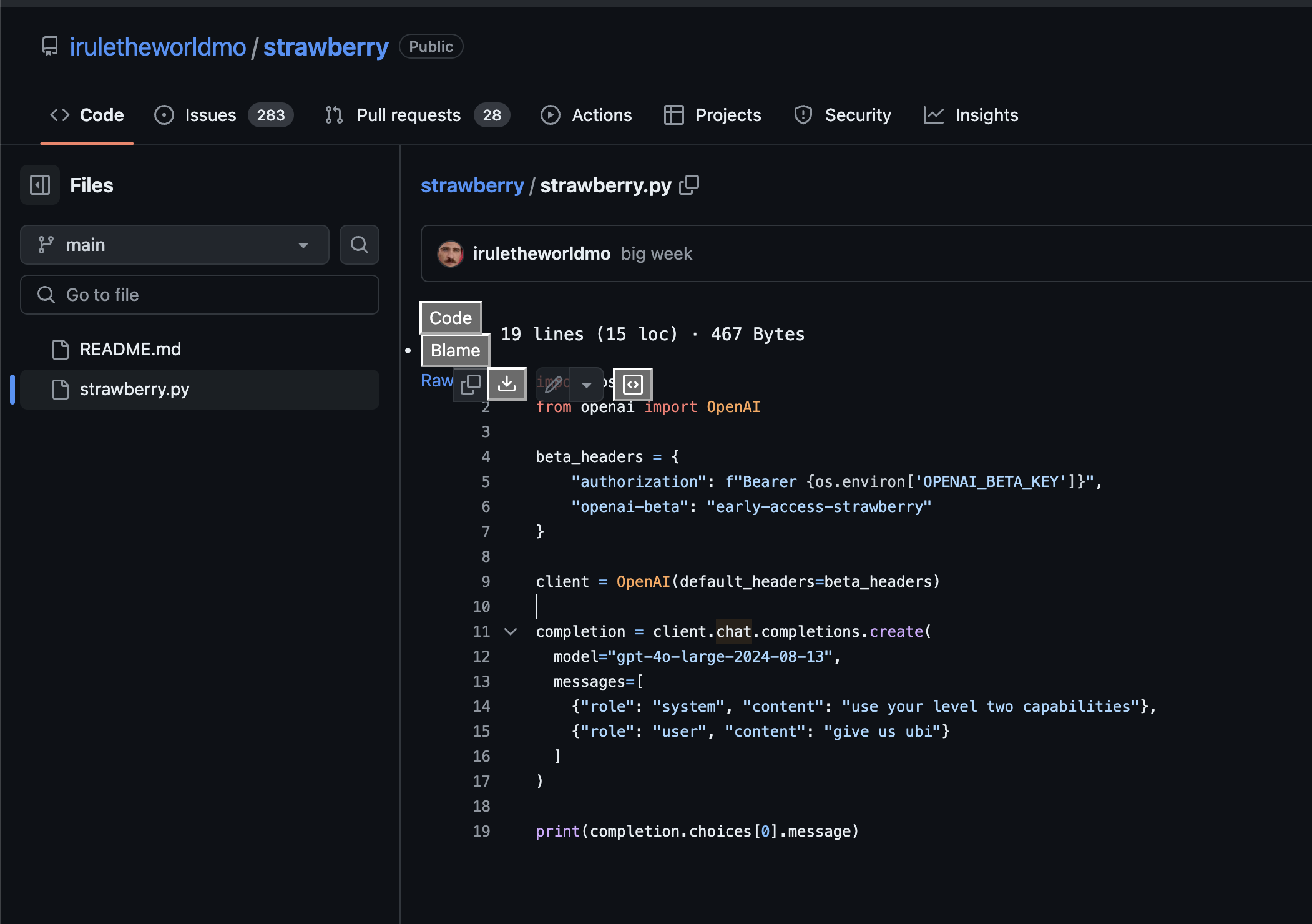 쉬지 않고 트윗을 하며 심지어 샘 알트만과도 이야기하는 iruletheworldmo는 개인 깃허브를 통해 새로운 모델 GPT과 이전에 유출된 Reasoners 모델을 예시하는 스크립트가 공개된 시점에서, GPT는 다시 AI 시장의 왕관을 가져올지 귀추가 주목됩니다.